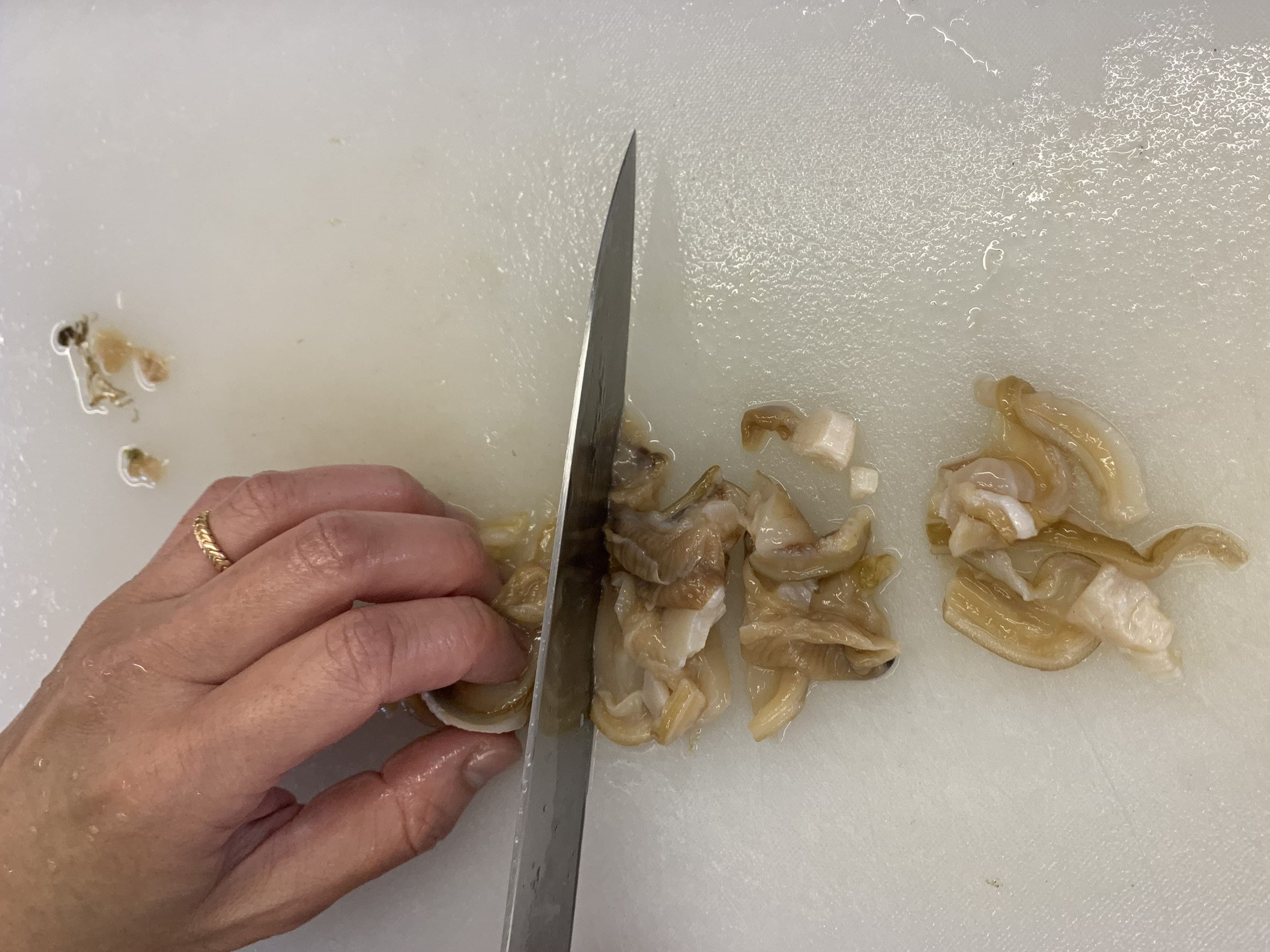 ③貝ひもを食べやすい大きさに切る(3~4センチ)