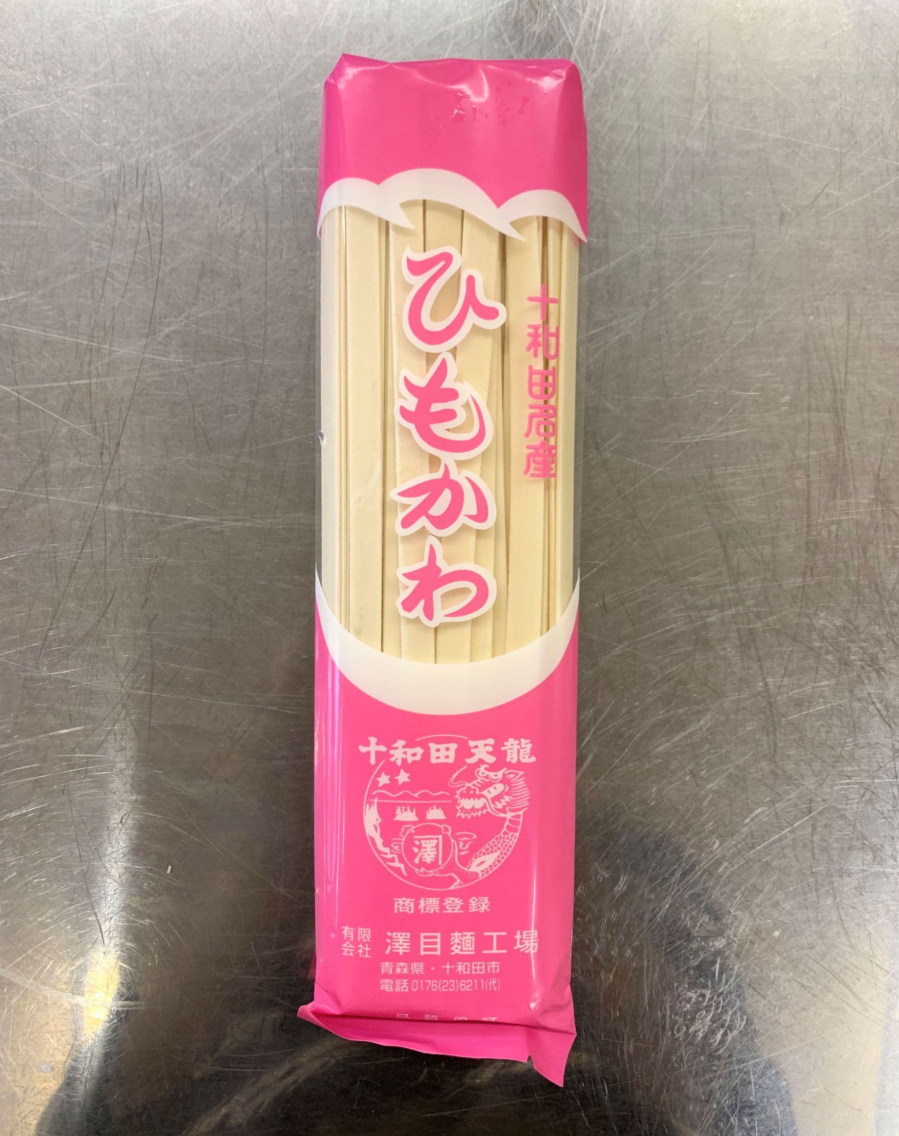 ①ひもかわは、半分に折り、たっぷりのお湯で茹で、洗ってぬめりをとる。
