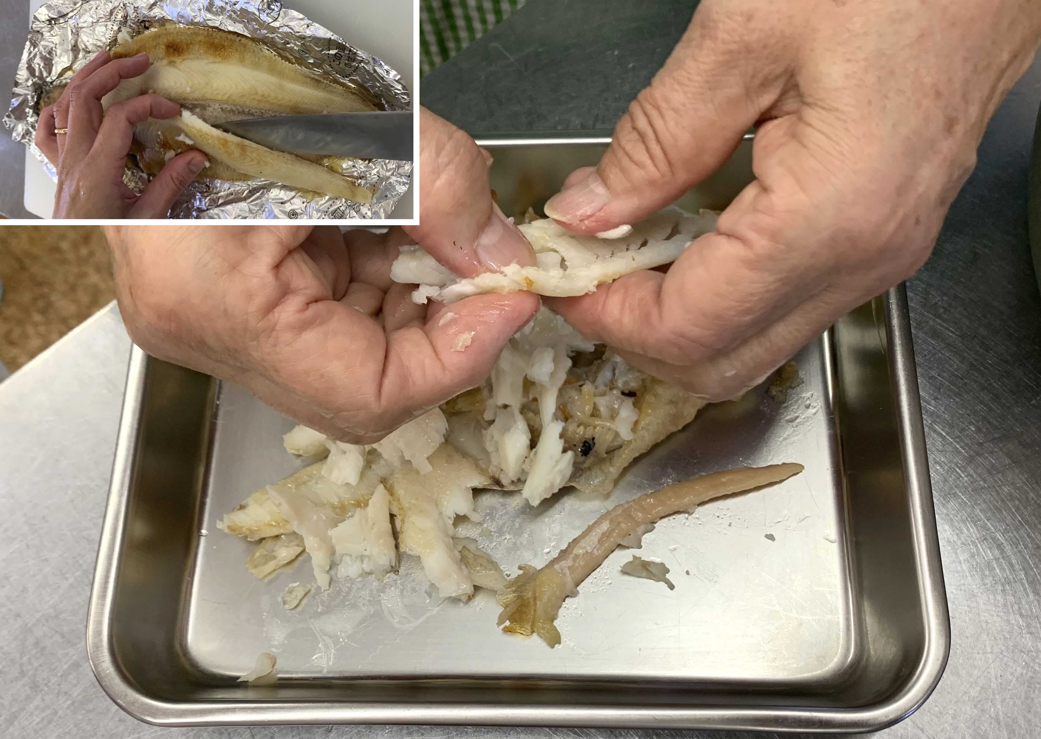 ③焼きガレイの身をほぐして、骨を取る。