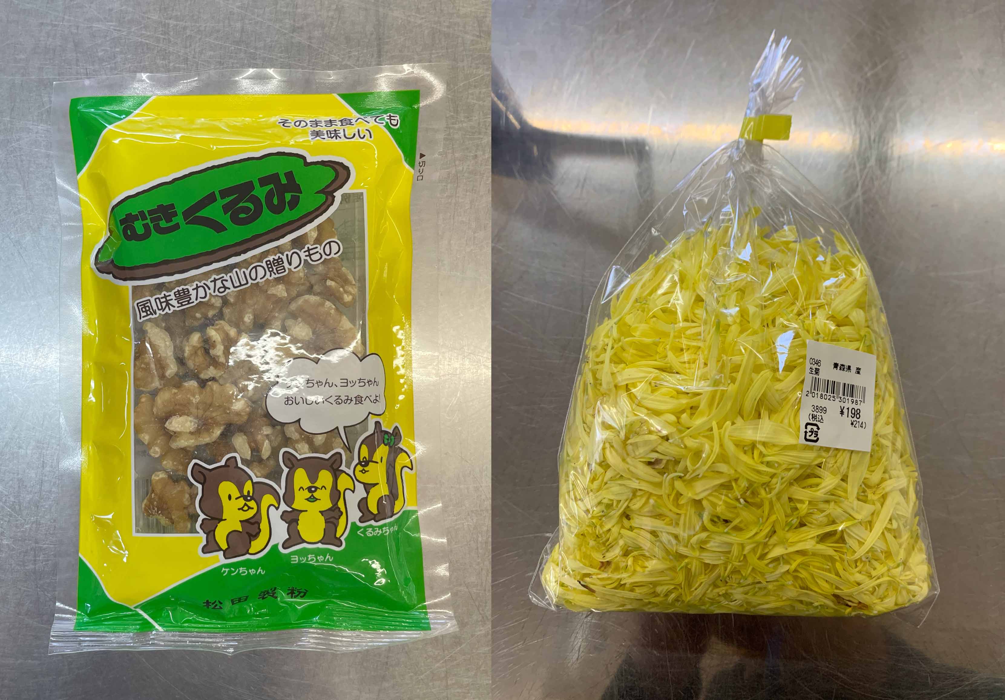 材料(4人分) 菊の花 約100g くるみ 45g 出汁 大さじ2 酒 小さじ1 砂糖 大さじ3 塩 小さじ1/2