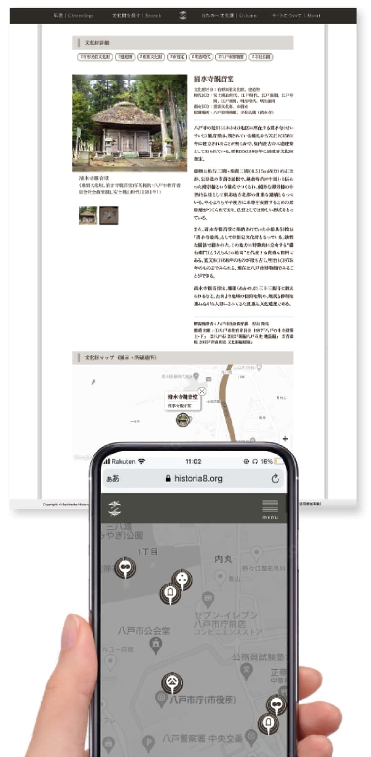 また、年表中の文化財をタップすると、画像と共に市内学芸員による解説文が閲覧できます。